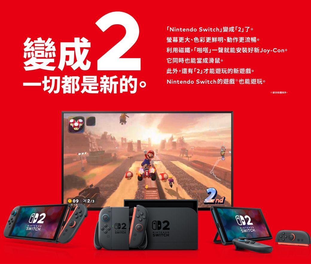 Switch 2詳細內容以原廠官方網站為準。 配備 7.9 吋 1080p HDR10 LCD,畫質清晰流暢,隨時隨地暢玩遊戲。 連接 Dock 輸出 4K 畫質,支援 HDMI 2.1 與有線網路,適合大螢幕遊玩與家庭娛樂。
