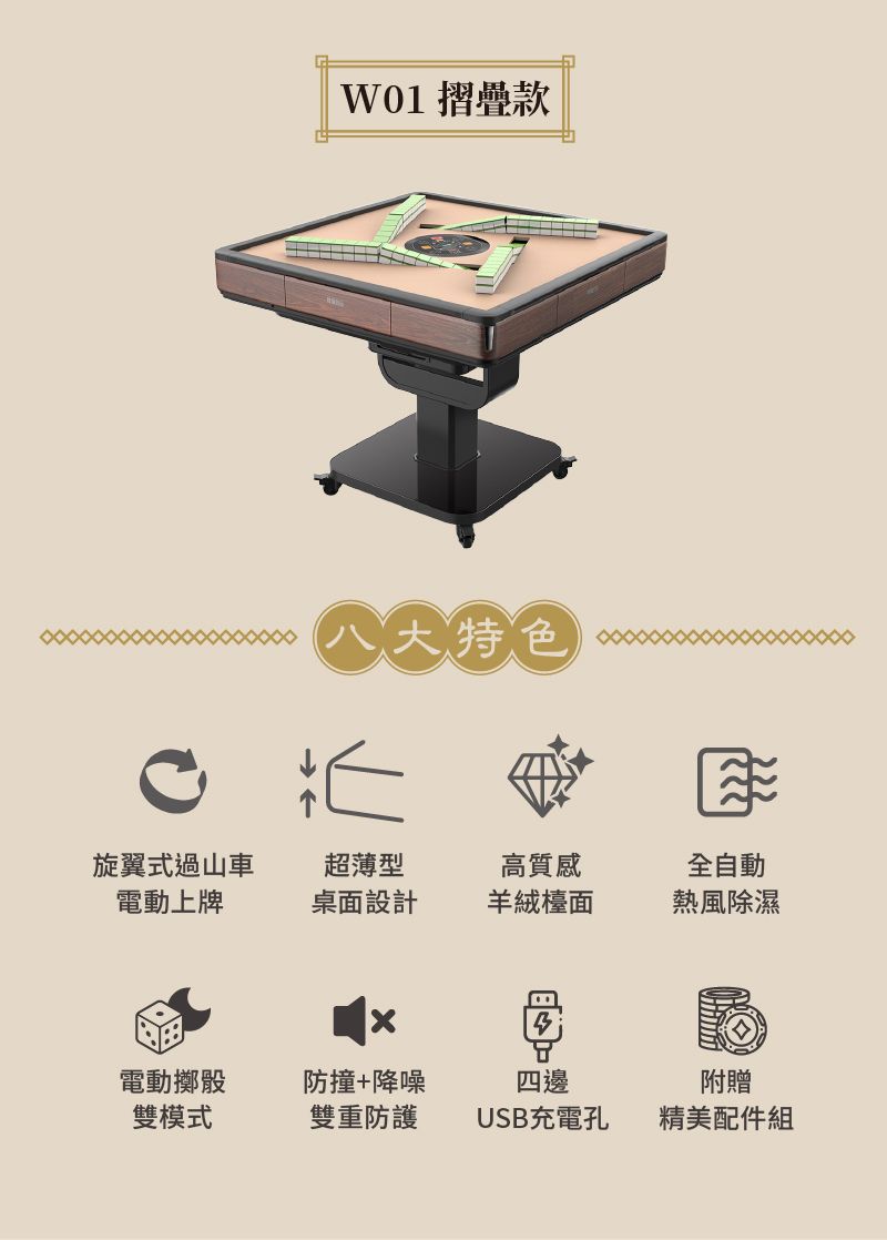 旋翼式過山車電動麻將桌;高質感羊絨檯面、隨貨附贈專用配件組 靜音、實體雙擲骰模式+折疊設計 不佔空間