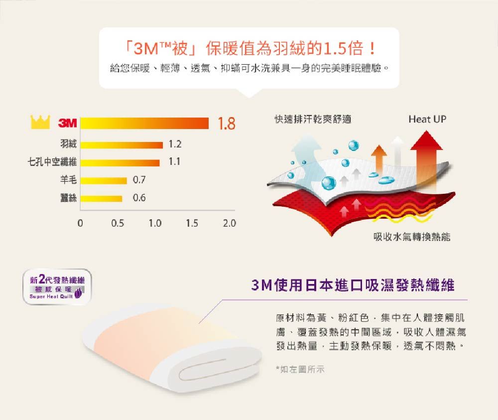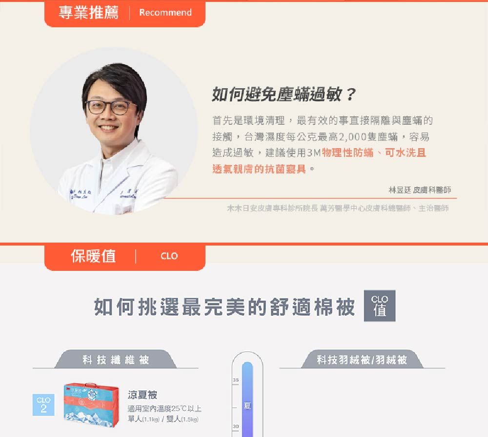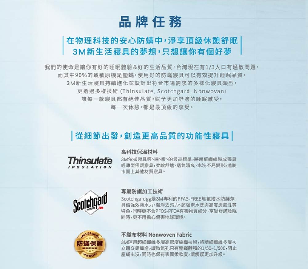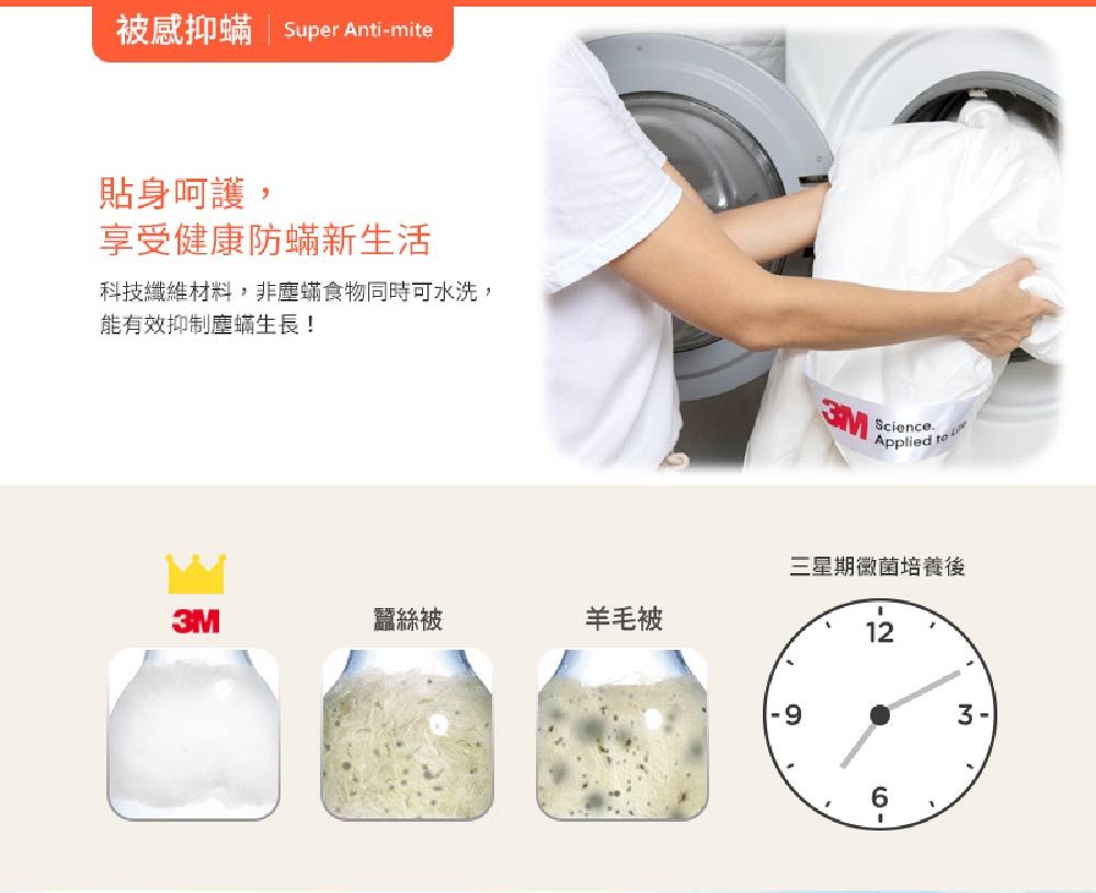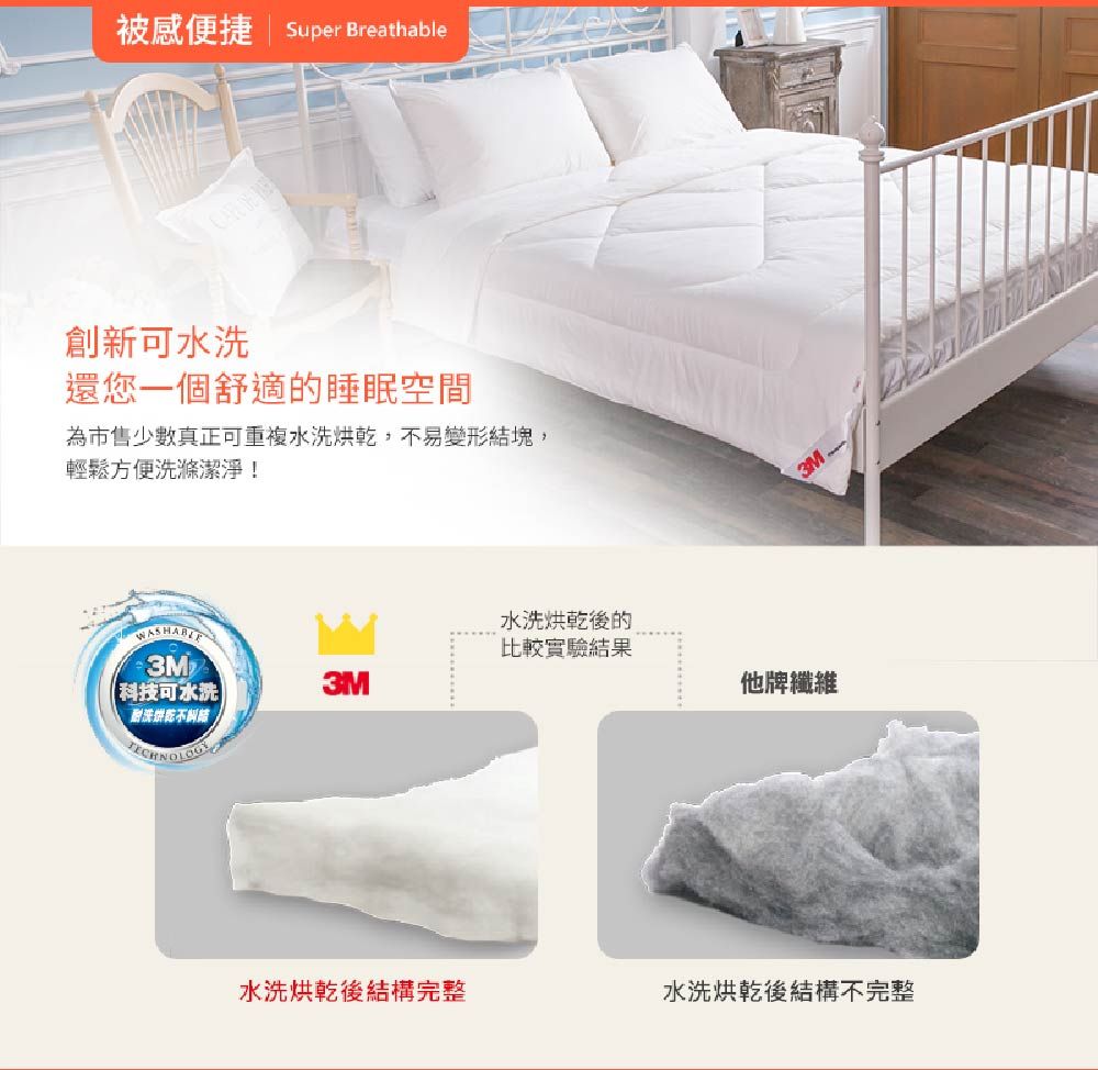 被感輕透-獨特纖維孔徑,輕盈舒適透氣 被感抑螨-科技纖維可水洗,不易孳生塵螨